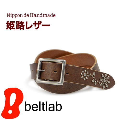 【ベルト スタッズベルト 日本製 送料無料】『 Nippon de Handmade 』姫路産のオリジナルオイルレザー、職人さん手打ちスタッズデザイン、メンズ、レディースに、ベルト職人さんがベルト1本1本ハンドメイドで仕上げた本革ベルト 牛革ベルト スタッズベルト